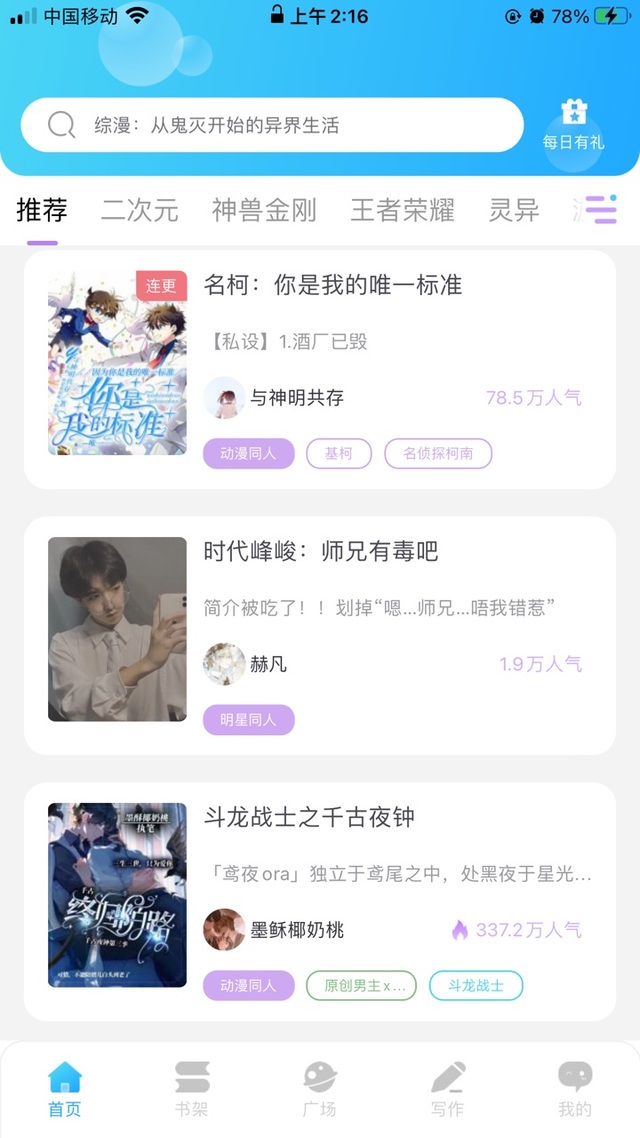 作者“而且我上推荐了噢噢噢,特别高兴我要双更,啊不是三更,高兴啊,有可能四更啊明天双更,好开心的,人气值也快两万了。”