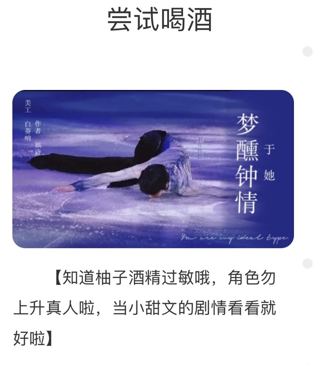 柚子不能喝酒,酒精过敏,《尝试喝酒》中德的喝酒剧情也只是小甜的剧情需要而已,我有在开头标注这章的剧情勿上身羽生结弦本人,这也是大家都问得最多的问题,还是想统一回答一下。