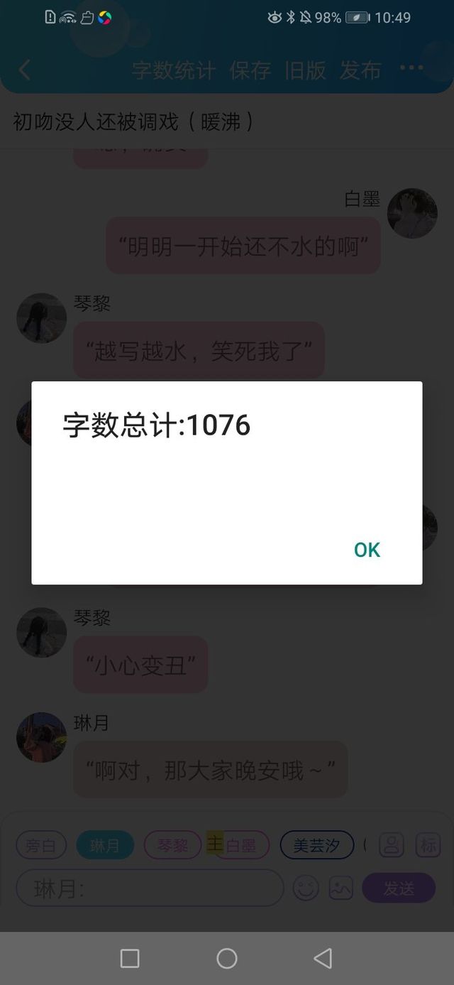 琴黎“越写越水,笑死我了”