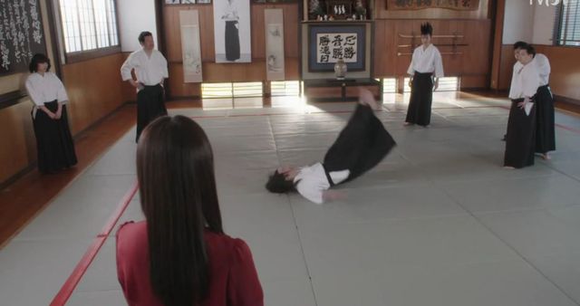 三桥和阿野当然没有理会,两人已经去更衣室换道服去了,而琼木老师还是在那叨叨着怎么不把自己换下来,直到山口老师的出现,琼木老师为了“爱情”以及他的面子,再次选择了留下,不过那几招确定不是随便掰扯的咩?阿野在更衣室的帘子后面吃瓜。