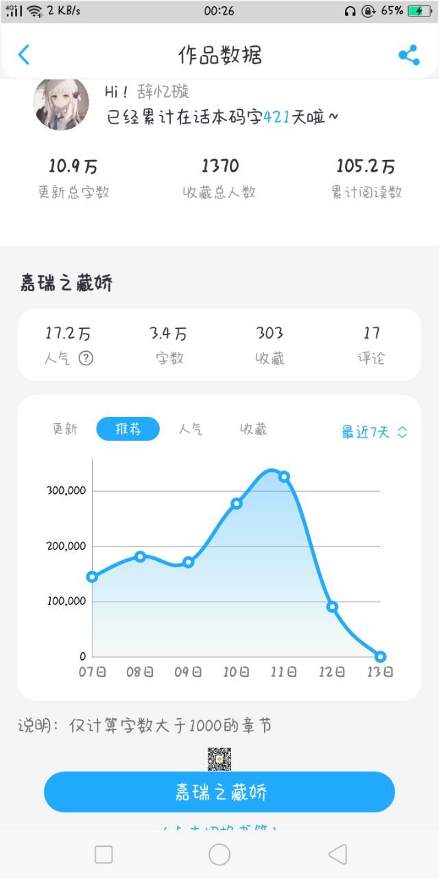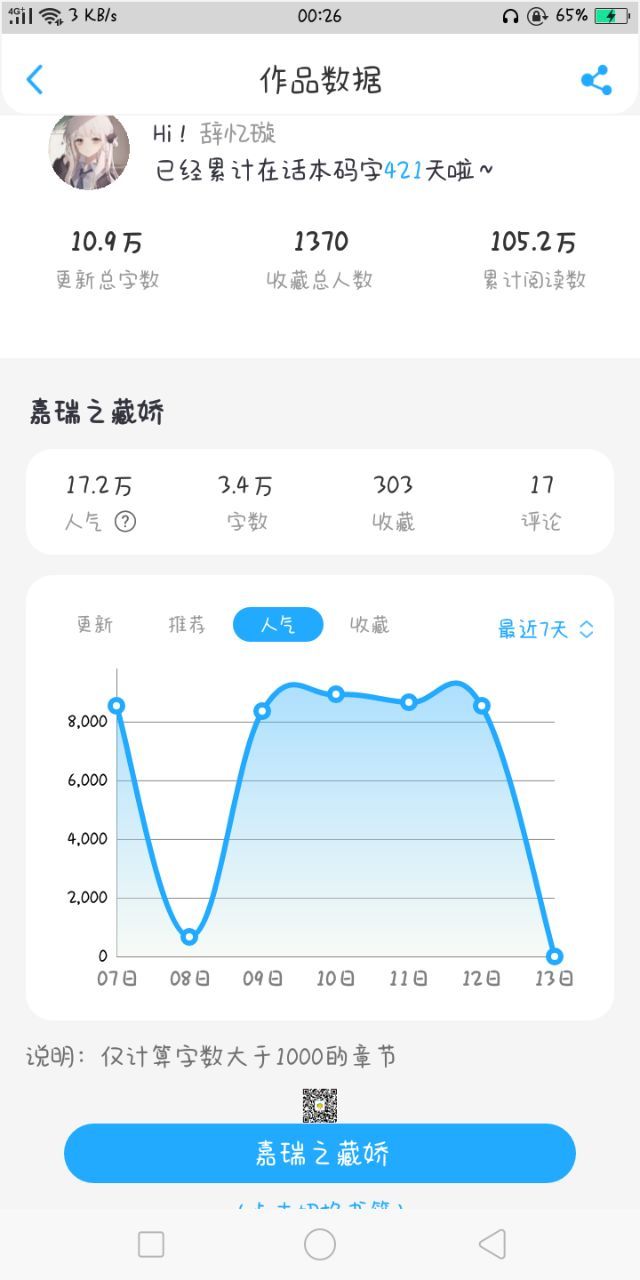 然后呢我发现,和我字数一样的几个作品,人家收藏,人气和评论都比我多
