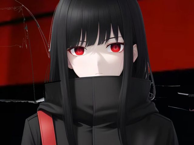 当她黑色的秀发在阳光中闪耀着红色的光芒,她的鲜红眼睛如同玫瑰花一般娇艳动人