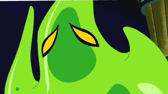 那是一团从下水道里爬出来的绿色粘液,它的上半身变成了人形,用变大的手直接拦下了倒塌的墙壁,随后带着他们一家人远离了战场