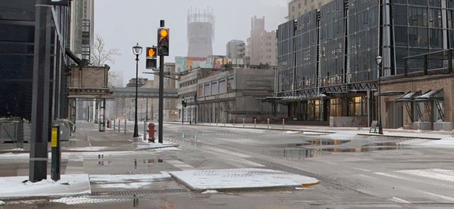 开着车,走了一会儿后,他们来到了切尔诺伯格的贫民窟,弗兰克并不想要来到这里,但没办法,这里是前往赛场的必经之路