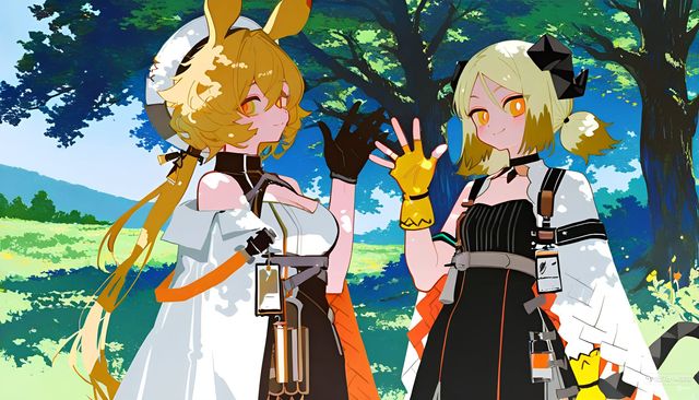 本来想给博士一个惊喜的多萝西和伊芙利特以为被发现了,于是从草丛里走出来打了个招呼