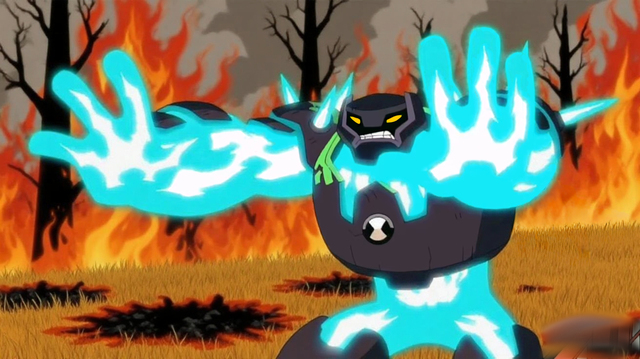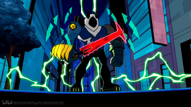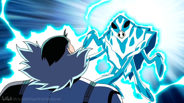 只不过当菲尔来到博士身边时,omnitrix充电完成,随着它近距离发射电流,在一片电光中一个黑色的影子出现了