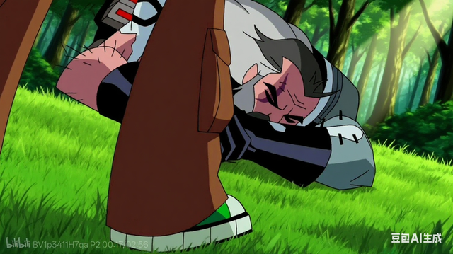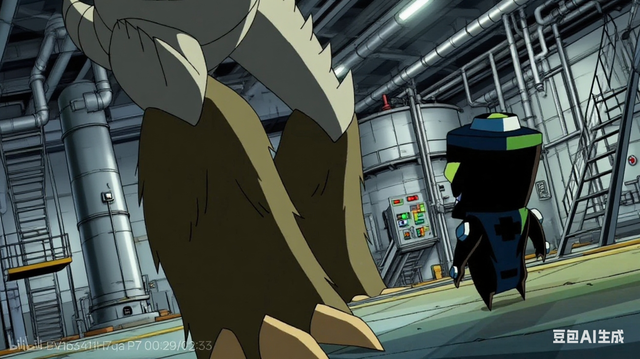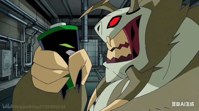 就在怪物即将对一个工人挥舞利爪时,博士终于启动omnitrix,变身闪眼队长为他挡下了攻击