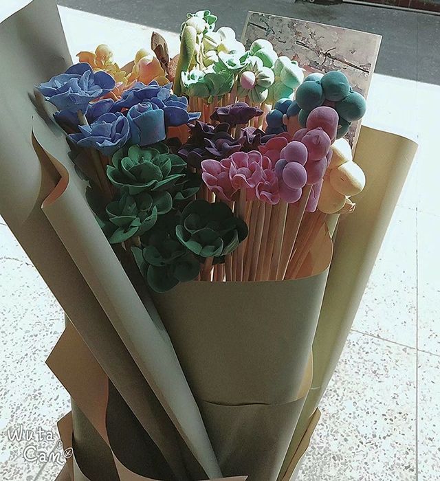 G.说实话,这束花是我在2021年的夏天自己用超轻黏土做的