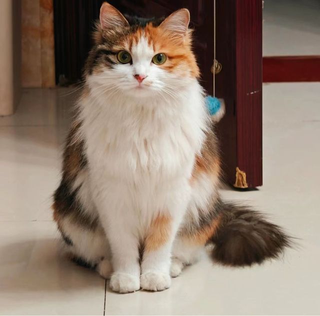 墨青桃一只是三花长毛,一只是小小的黑猫,但是它有白手套