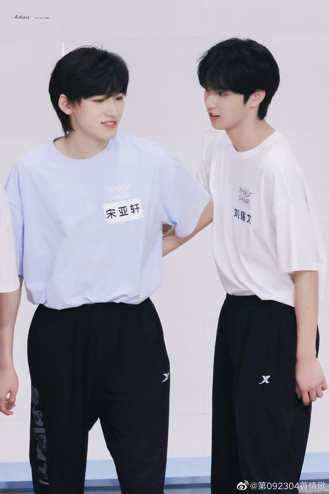 宋亚轩和张真源就站在了跑道上,两个人中间隔着三个人,宋亚轩站在第一个跑到,离观众很近。而刘耀文就杵在哪里站着。