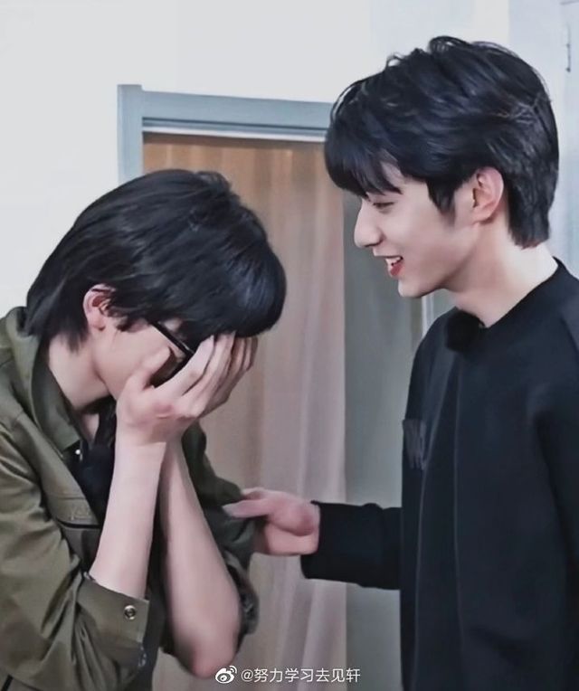 伸出小指就要跟刘耀文拉勾,两人盖下约定的章。