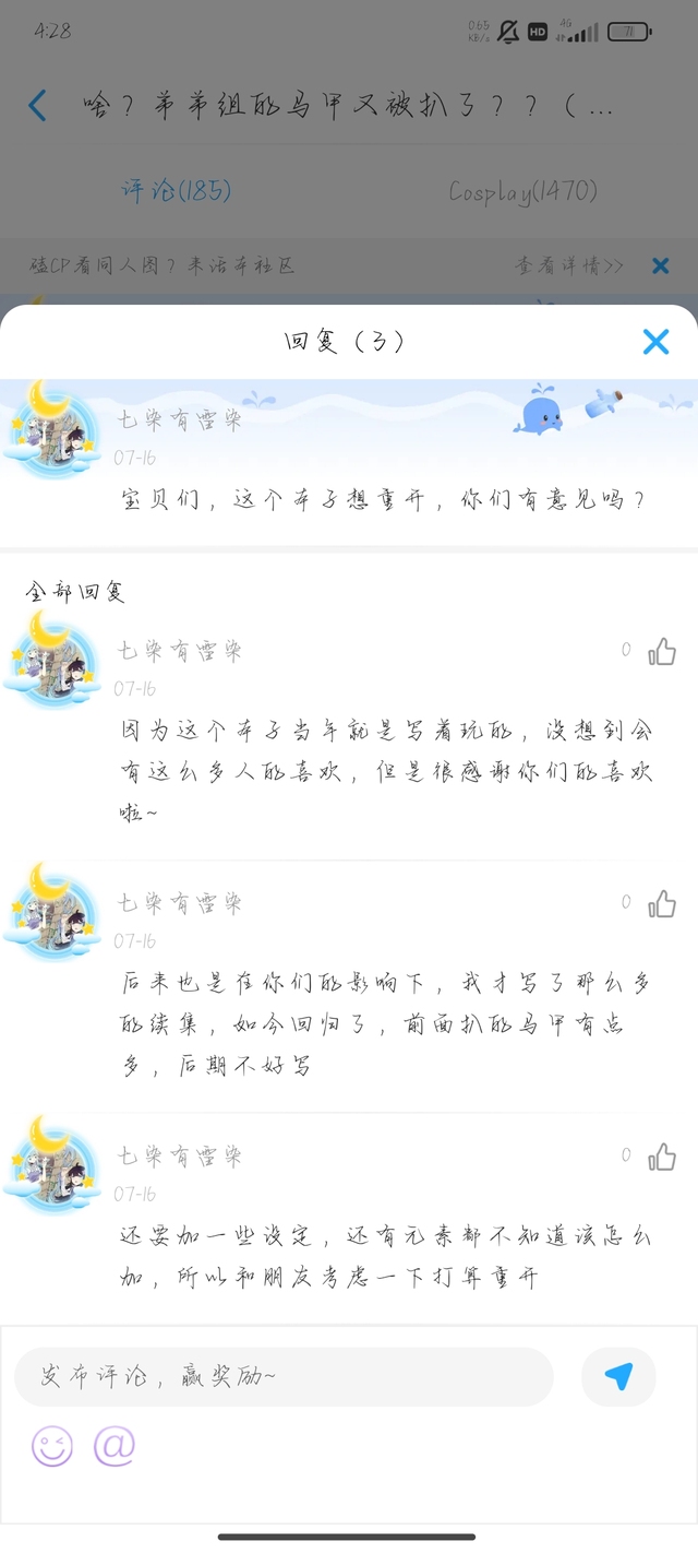 来世要炸源力池的作者我在评论区里也有说过啦