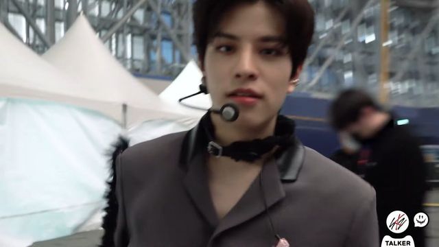 安瑟站在后面一点,因为前排站的都是前辈,再加上这次的打歌又有NCT,又有Stray Kids,还有其他比较有人气的前辈团,她就没觉得自己能得一位,所以站在后面东张西望