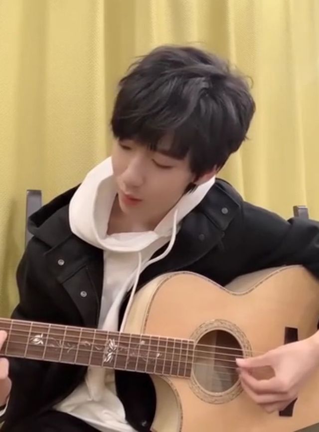 顾简好奇的循着声音走了过去,看见贺峻霖抱着吉他坐在天台旁边