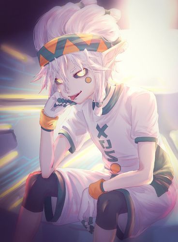 白色的碎发搭在少年纤细的脖颈上,嘴角上扬的弧度是恰到好处的笑容。