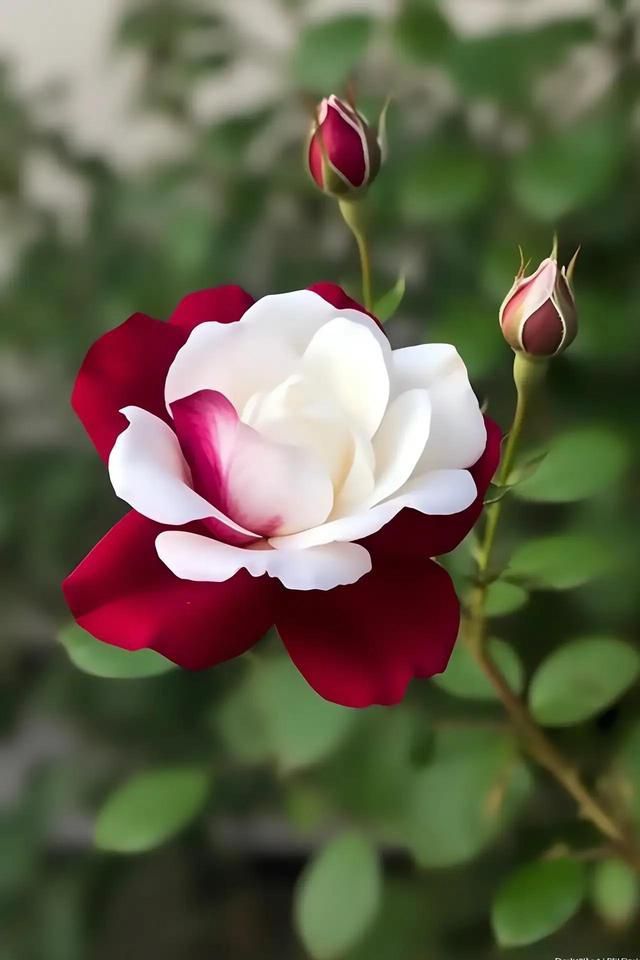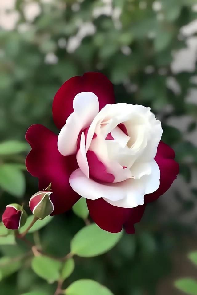 红白魔女库伊拉月季,又名双生玫瑰,是洁白无瑕的白与热烈似火的红完美碰撞的一款双色月季花。