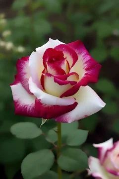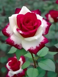 库伊拉月季是月季里的女神,于1993年就培育出来了,但是2001年才面世,历时八年的不间断实验,又名双生玫瑰,是真实存在的,是洁白无瑕的白与热烈似火的红完美碰撞的一款双色月季花。~