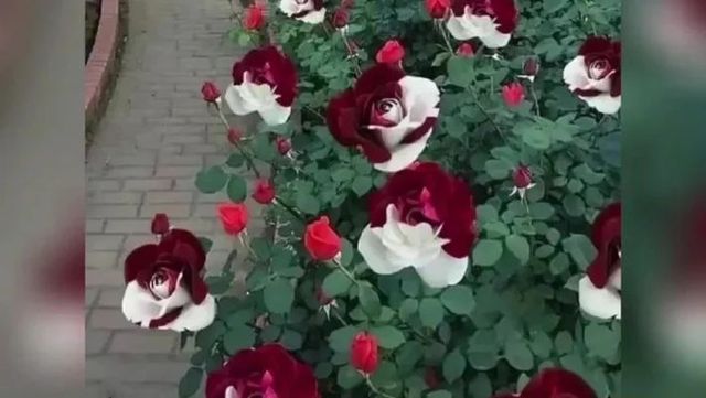 双生玫瑰开花了。传说中的红白魔女库伊拉,半身红的热烈似火、半身白的纯洁无暇!