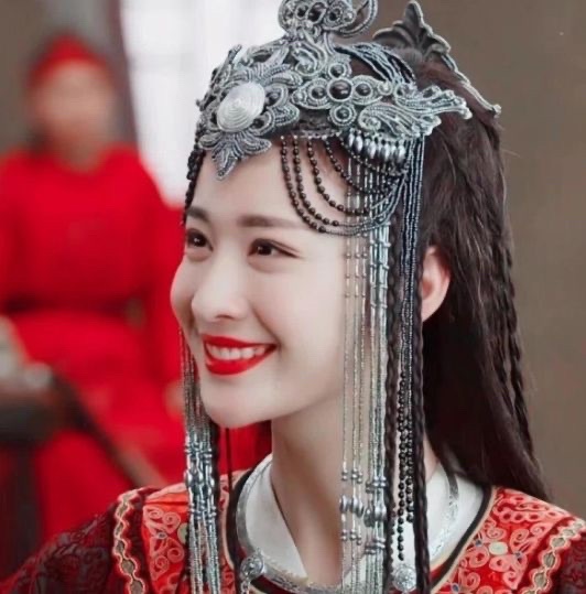 异域风格的额饰点缀在傅倾的眉间,整个人显得十分灵动,红色衬的傅倾肌肤更加白皙。非要形容的话,那便是“此女只应天上有,人间难得几回闻。”