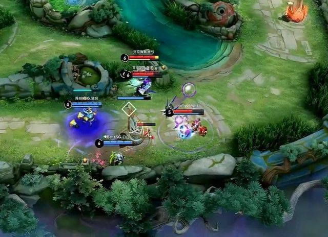 橘右京淡定刷蓝,蒙恬开大,把持要塞,堵住不知火舞和露娜两人去路,苏州KSG阵型分散,无法形成反包,蒙恬甚至嚣张地追着露娜打。