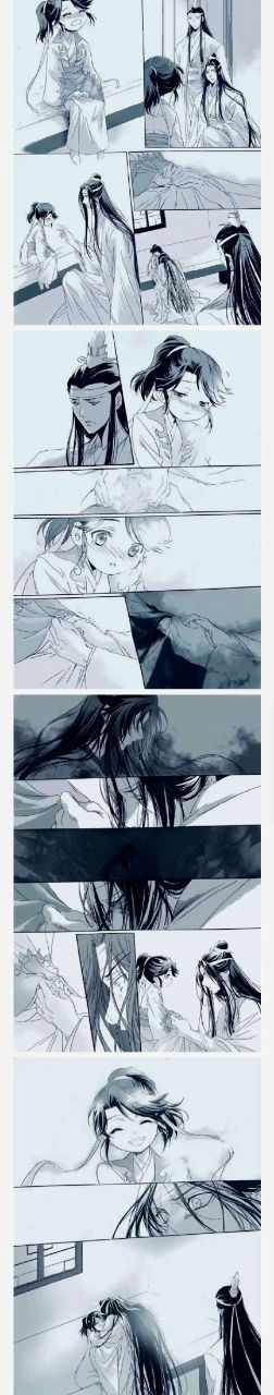 蓝忘机双手握紧却在肉眼可见的颤抖着,忽的一只小手的抚摸将蓝忘机拉回了现实,蓝忘机眼神惊愕的看着双手再次抬眸时正好对上那人的笑容,再也绷不住了,拱起后背失声抽泣了起来。