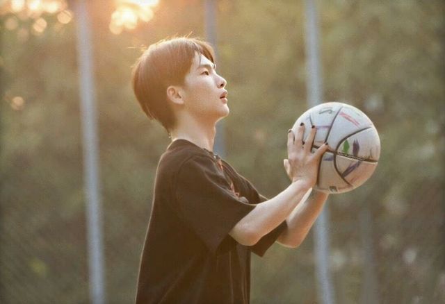 罗玧菲手中拎着从家里拿的水,坐到了篮球场旁边,拿着手机给他们照相