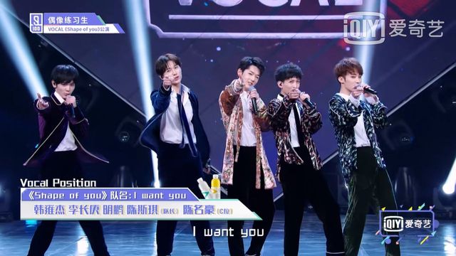 张艺兴接下来有请《shape of you》的vocal位置练习生上台,有请