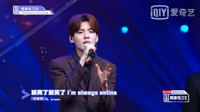 张艺兴没错,接下来要表演的这首歌就是jj林俊杰前辈的《Always online》,请选择了这首歌的练习生来到舞台上,有请