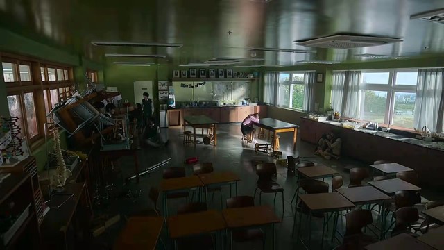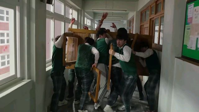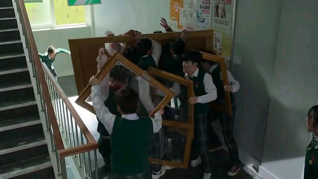 其余的男生卸下教室的窗户,帮着秀赫打怪物
