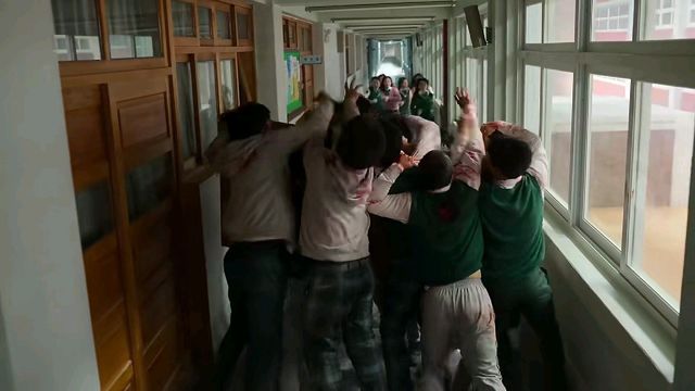 男生们用力顶住,给女生们时间逃跑