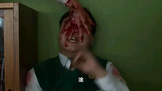 俊英用灭火器用力砸着他的脑袋