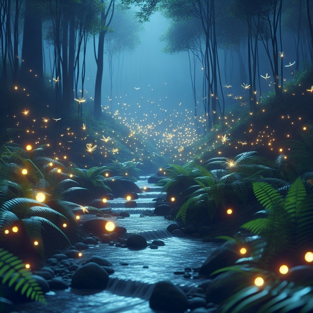 接着,第二点,第三点……仿佛被雨水的魔法召唤,无数光点从浸湿的草地和树叶间翩然升起,轻盈地飞舞在空中,越来越多,织成一条流动的、璀璨的光河。