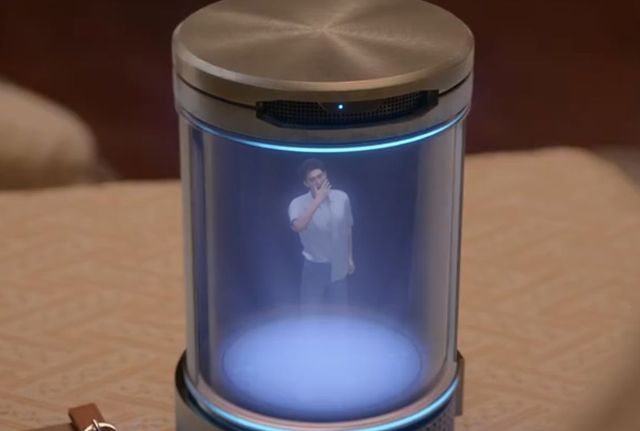 那机器里装了一个很小的人,那人伸了一个懒腰,做出了刚睡醒的状态。