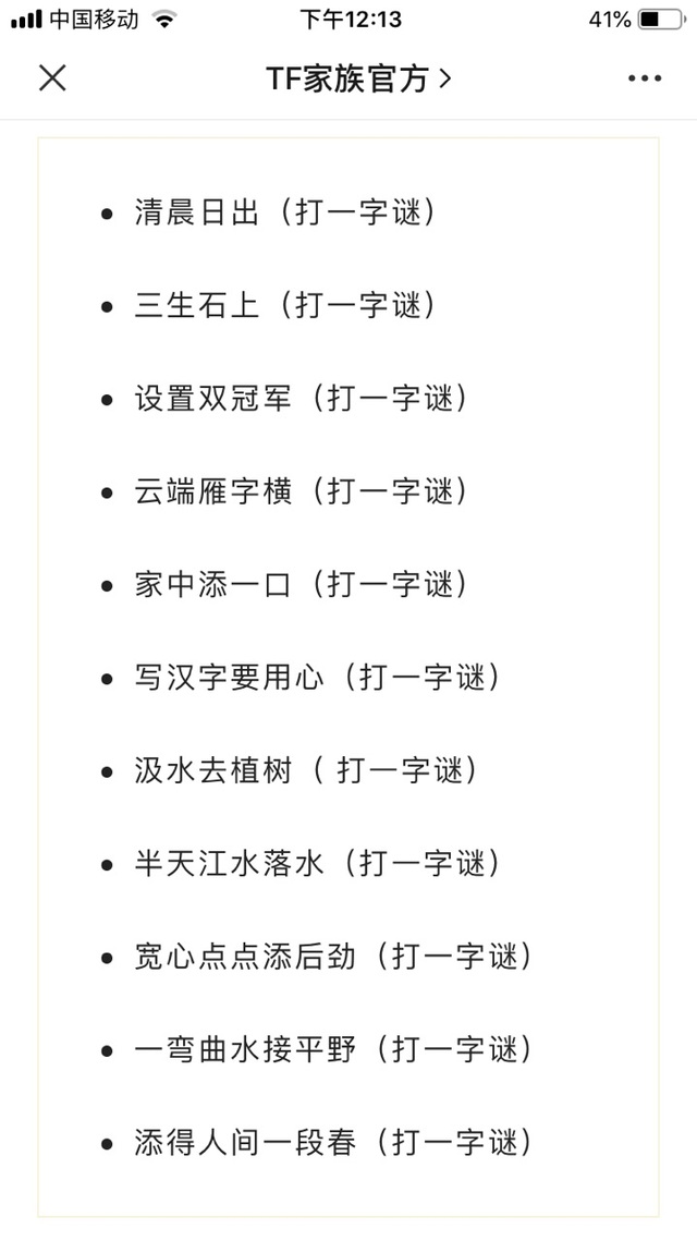 豆豆这个每一个字谜都是三代一位成员的名字好像😁