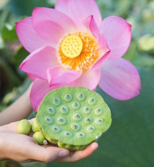 看到放在膝前的莲花,又看了看腿上用荷叶盛小山堆的莲蓬,还有自己好不容易剥好的莲子仁