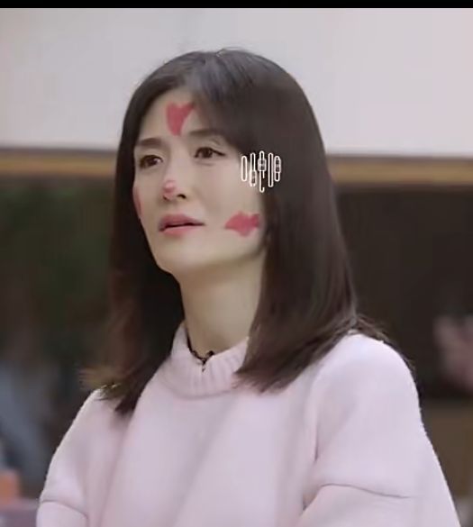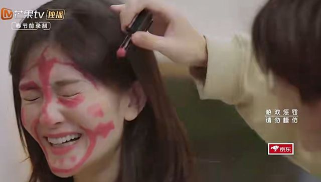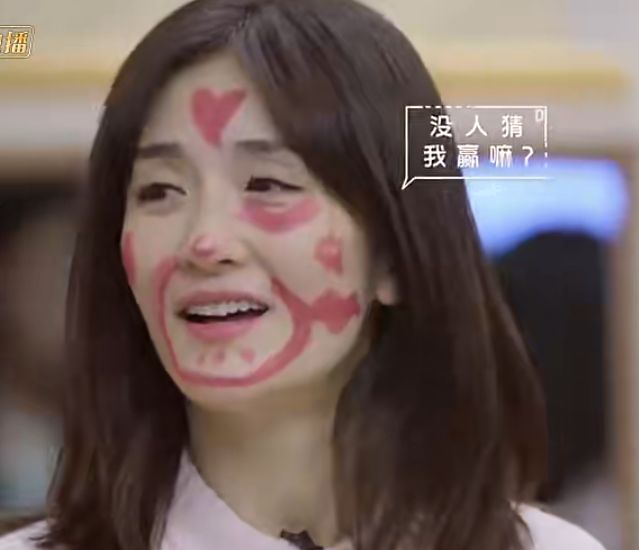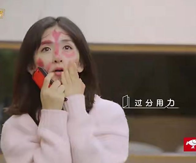 何炅她的动作配上她脸上的妆