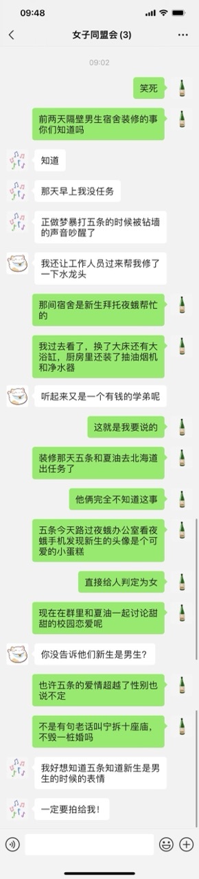 家入硝子一栋宿舍住四个人,进门的那两间是五条和夏油,第三间空着