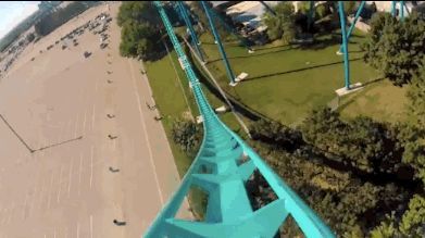 只听“嗖”的一声,列车一下子从最高点冲了来了。