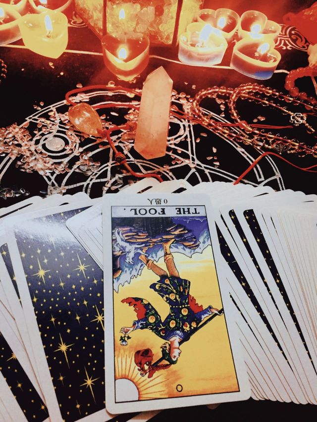 对面的人点起一根蜡烛,拿起塔罗牌将它们打乱,随后双手轻轻摩擦水晶球,不知道是不是因为摊位的灯光或蜡烛。我好像看到平平无奇的水晶球有暗光浮动。而随着对方的动作停下,我忍不住询问。