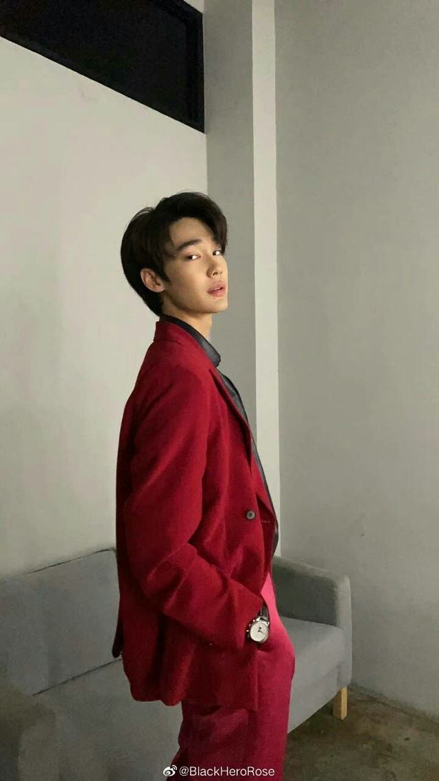 Ren红色西装紧紧贴着身形