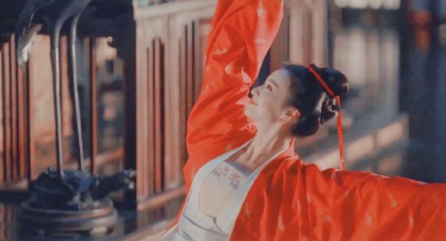昆曲伶人缓缓登场,这时一方水台后李安只身而出的身影才在薄雾下走了过来,别的演员都是淡淡的粉红色,李安的一方水袖却是正红而且是新婚时才会用到的大红色,她的手里是一把纸扇,婉转舞动,头上的步摇更衬得她像一支从清水里生长出来的芙蓉花,清水出芙蓉天然去雕饰。