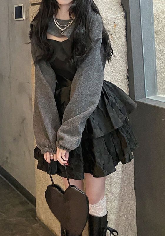 然后穿上黑色连衣裙