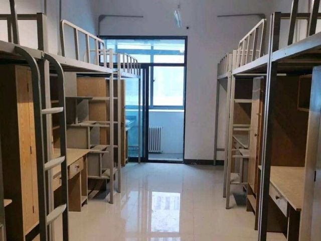宿舍是四人一间,环境还算不错,空调、独立浴室和书桌要样样齐全。