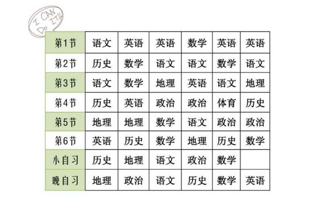 这是校长发给我的高中课程表,英语课上报名日语的孩子们就去上外教课。大家都很自觉,也已经习惯一年了。