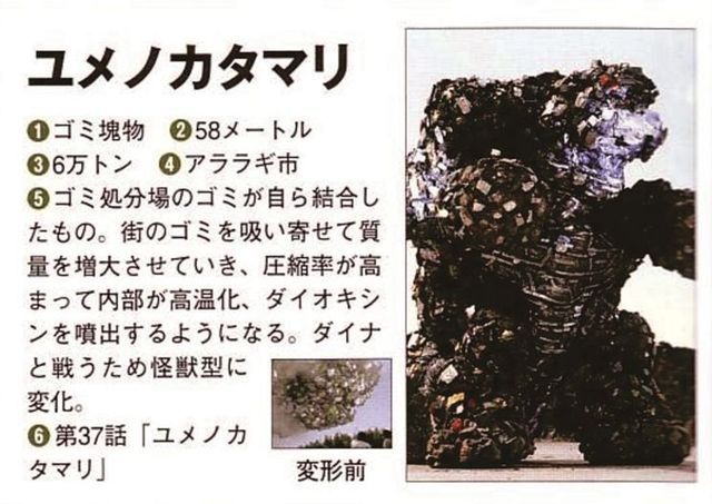 雷欧奥特曼(凤源)那里有一个被称为“老师”的垃圾场管理员,他说梦加塔玛利是垃圾的反叛者,有“生命”的垃圾们,集合了那些被抛弃和销毁的怨恨,来像人类报复了