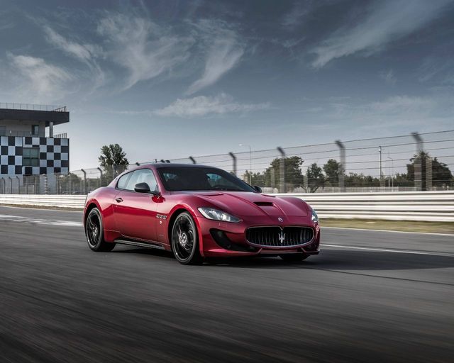 一辆红色的玛莎拉帅气的从江苏梦身旁经过