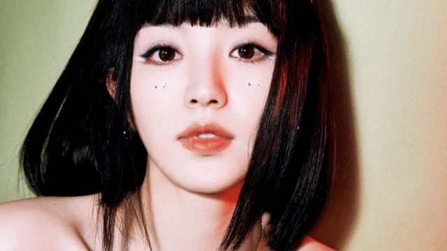 黑发长泄,怪诞猎奇的妆容在那张精致的娃娃脸上发挥着视觉冲击的作用,左眉和唇下都打着银钉,仔细一看,跟亨特利是情侣款。