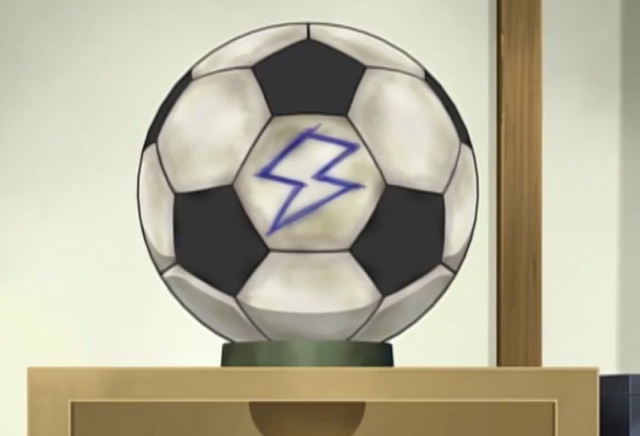 松风天马哦-还有啊(指着那个足球)那个标志跟雷门中学的标识很像对吧?