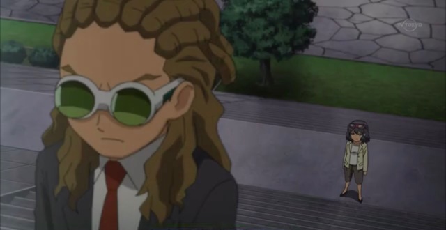 伊蒂丝和天马同样在河边操场 练习足球 佐助这时发现到信助在楼梯上方