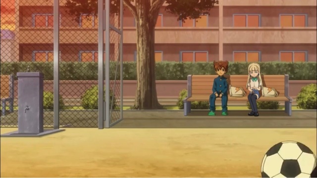 在一旁拿着足球发呆的信助被伊蒂丝叫名 信助下意识看向站在他面前的伊蒂丝和天马